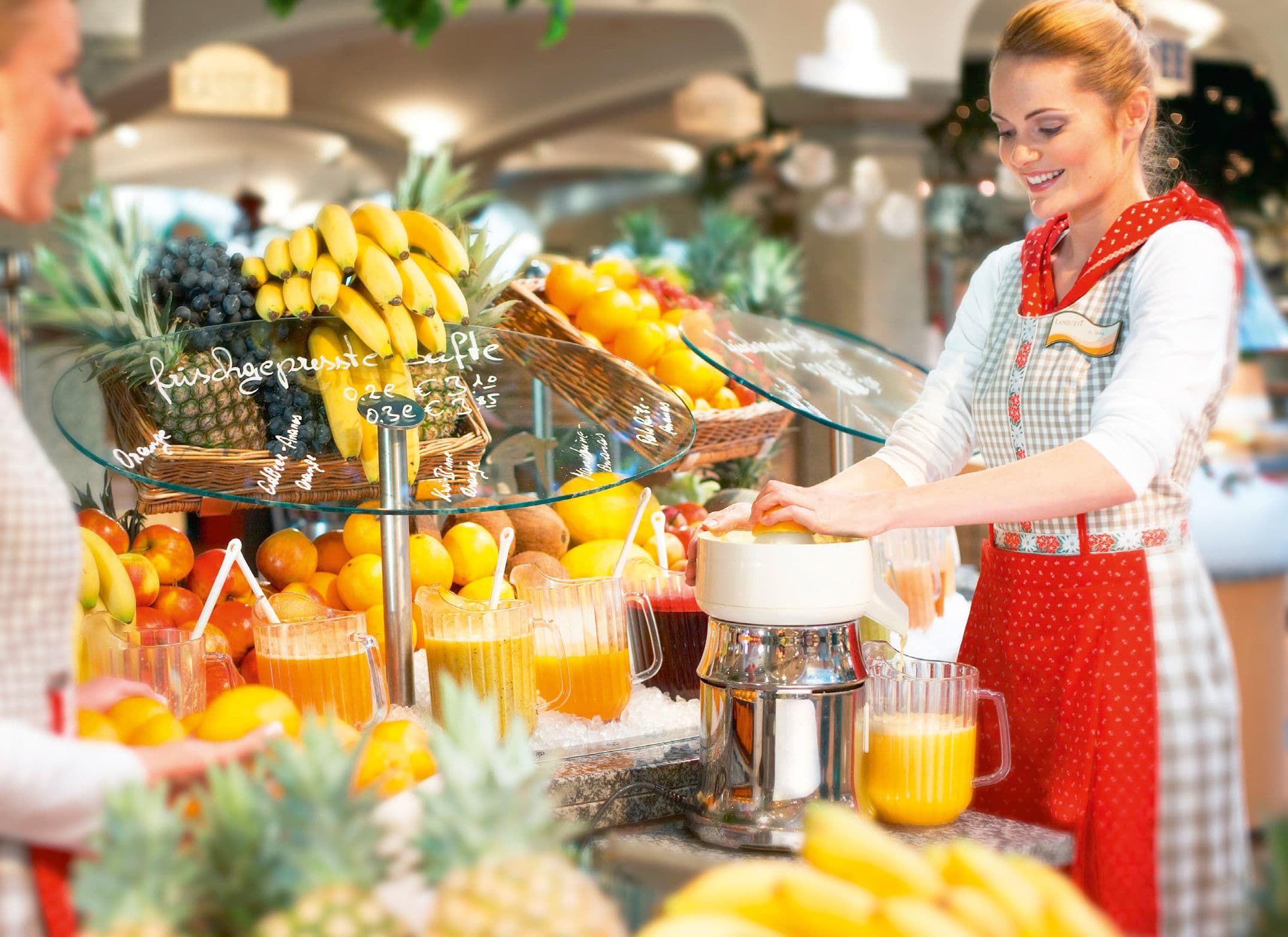 We squeeze our fresh juices by hand so that valuable vitamins are not lost. Our seasonal vitamin bar freshly squeezed: