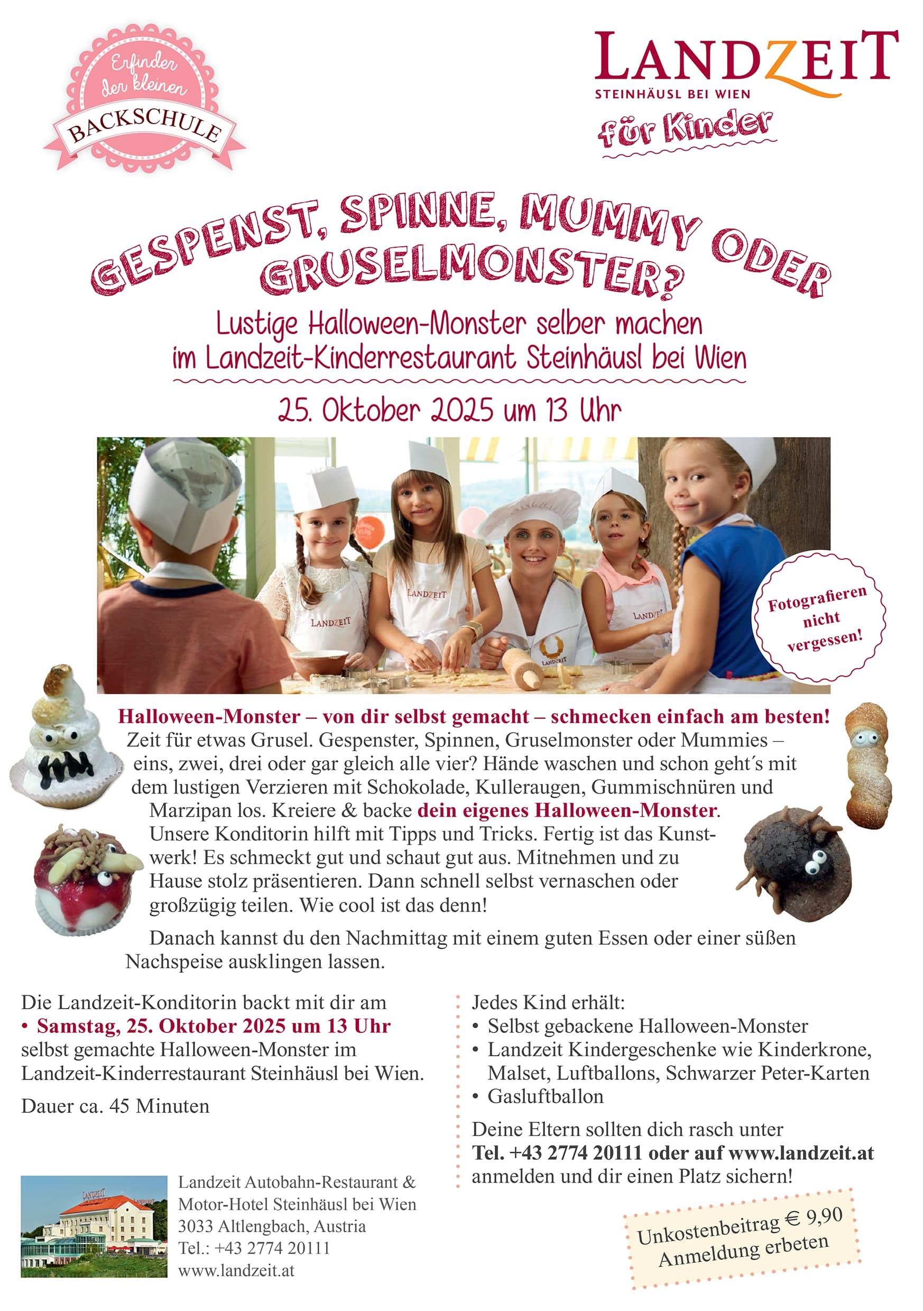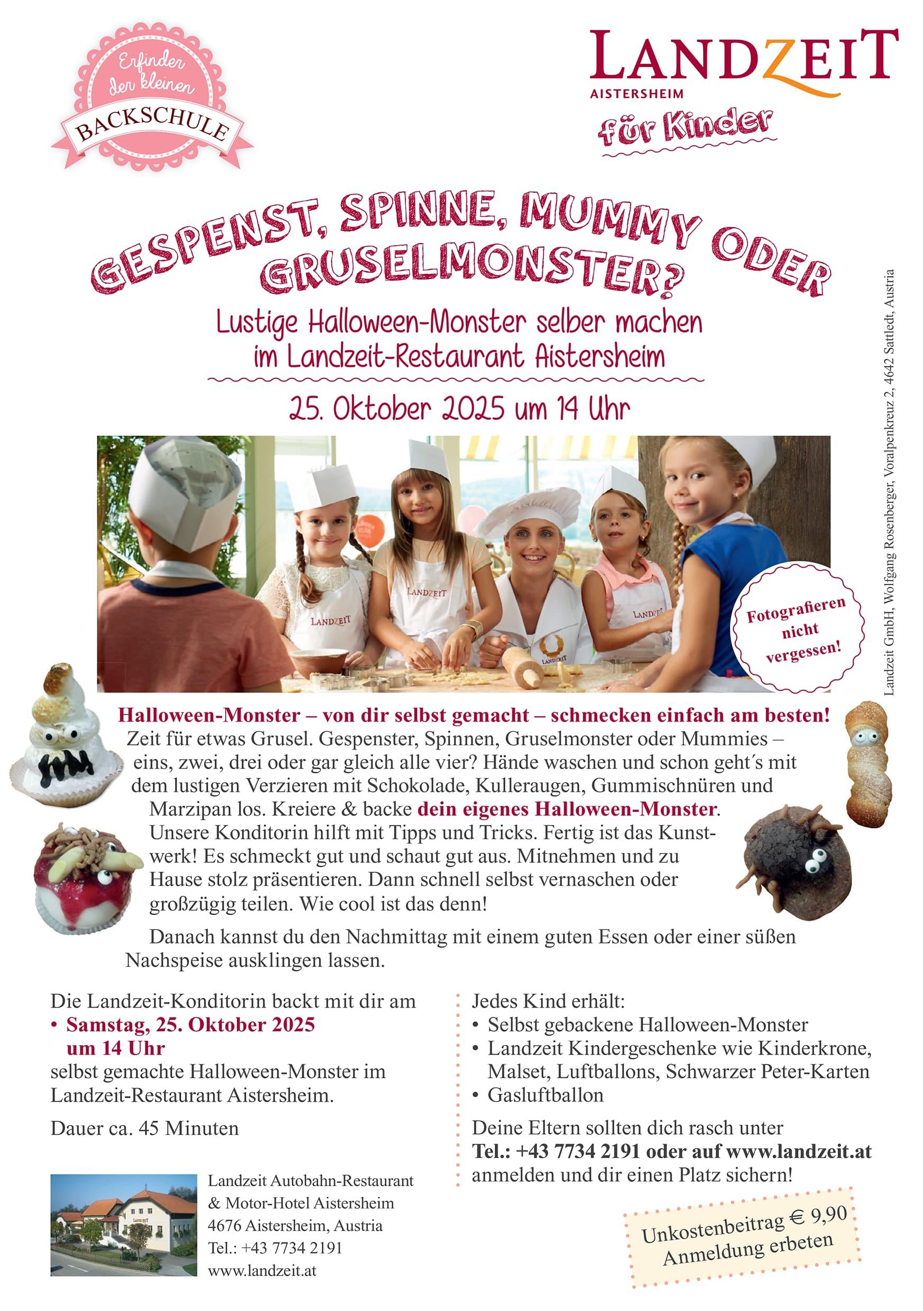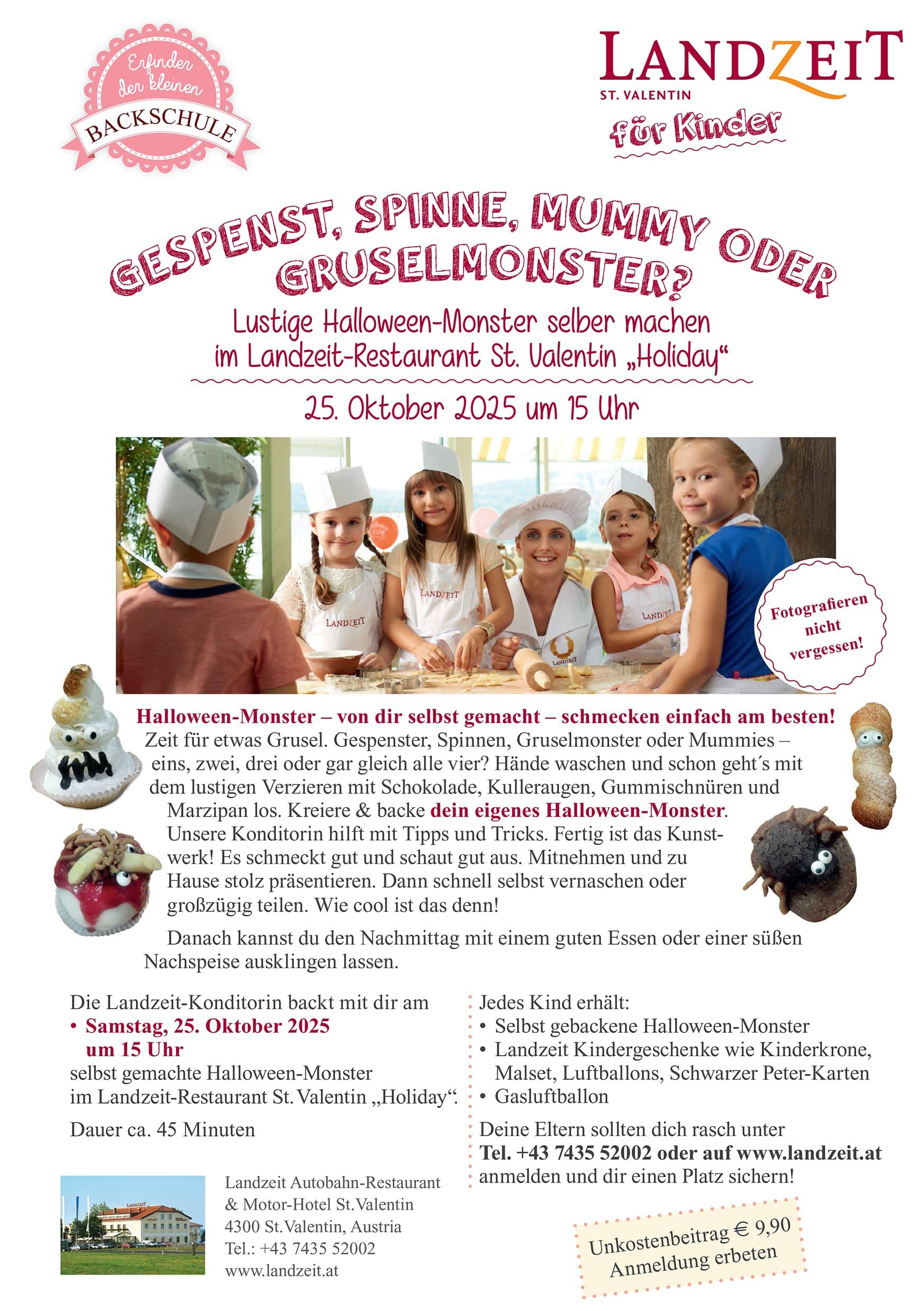 Each child will receive homemade Halloween monsters, a gas balloon and Landzeit children’s gifts such as a children’s crown, colouring set, balloons and Black Peter cards. Your parents should register quickly by phone or at Landzeit.at and secure your place!
