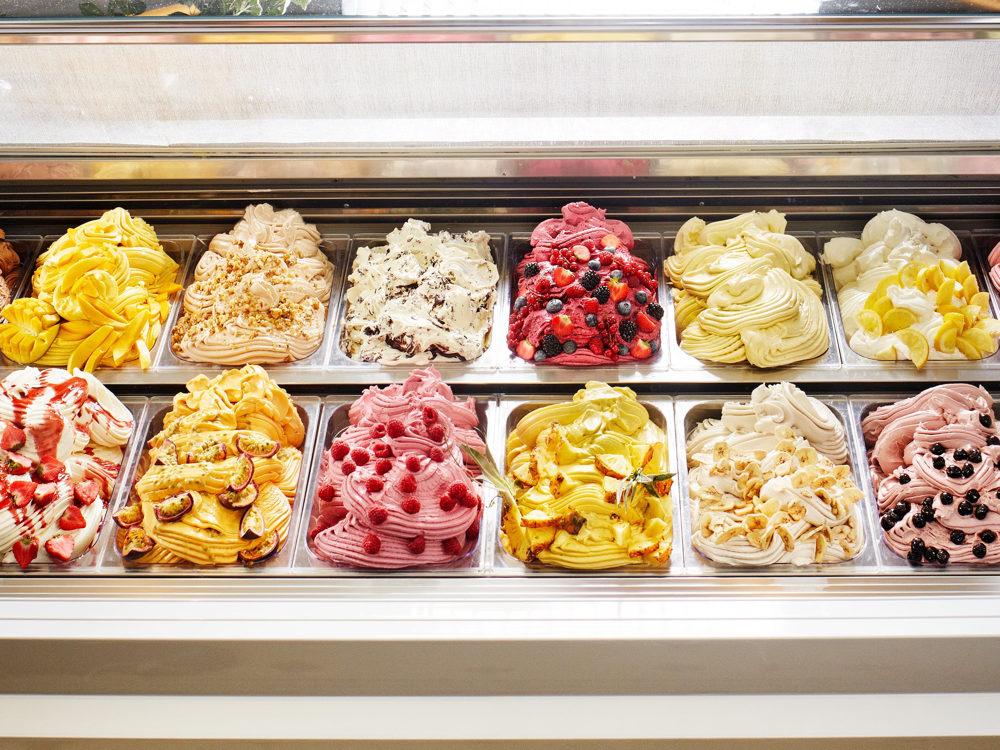Eiscreme mit Schlagobers, cremig handgerührt, in den Sorten: